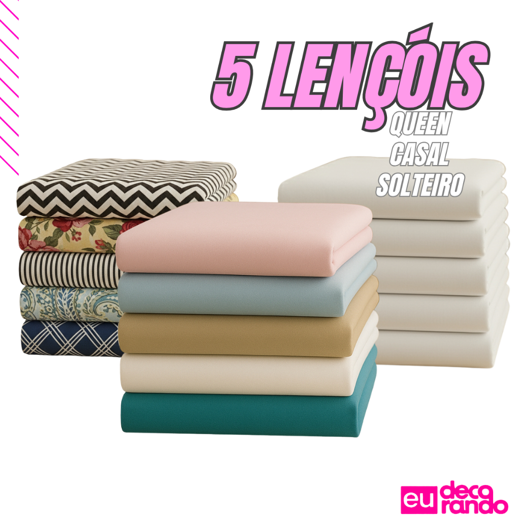 | Kit 5 Lençol Superior Sortidos Solteiro Casal e Queen 400 Fios Avul... este produto | R$ 79,90 | 25% | 4.6/5 | 231 |