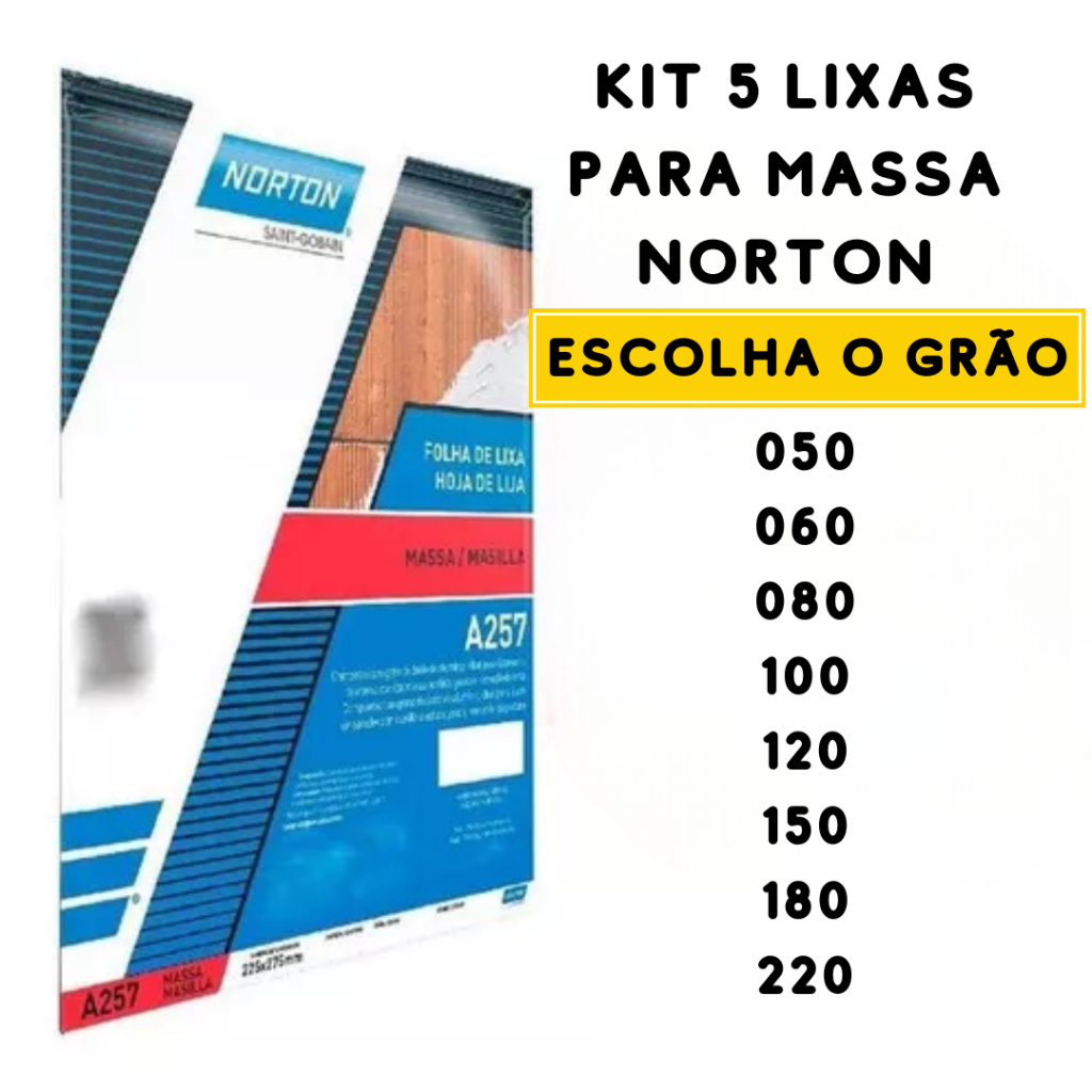 Kit 5 Lixas Massa Para Parede Grão 50 ao 220 Norton - Escolha o Grão