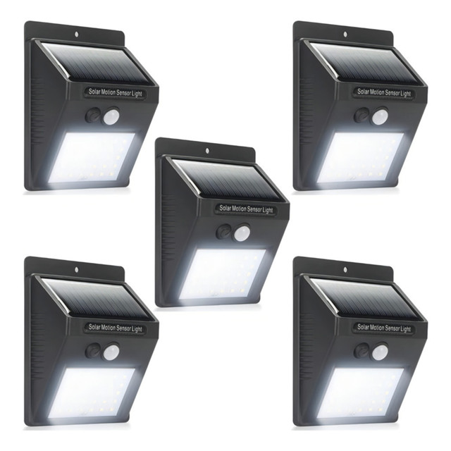 Kit 5 Luminaria Solar Luz Led Com Sensor Presença Automático Estrutura Preto