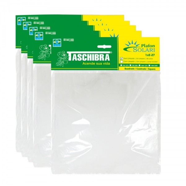 Plafon Solari quadrado branco para 1 lâmpada bocal E27 Taschibra Marca: Taschibra - Produto: Novo, com nota fiscal Acompanha kit instalação (parafusos, buchas): Sim Largura, diâmetro: 28 cm x 28 cm Altura: 10 cm Material: Aço, poliestireno + PSAI + Anti UV(ACRILICO) Cor externa: Branco Direção da luz: Iluminação ampla Estilo: Clean e moderno Formato: Quadrado Aplicação: Sobrepor Dimerizável: Não Uso em sensor de presença: Sim Acompanha lâmpada: Não Para soquete: E27 (Uso de uma lâmpada) Potência máxima: 30W Tensão máxima: 250V Garantia do fornecedor: 90 dias sob defeito de fabricação ou queima Necessita montagem: Sim, acompanha todos acessórios para instalação imediata Voltagem: Autovolt (usado tanto em 127v como em 220v) Itens Inclusos: 05 plafons.