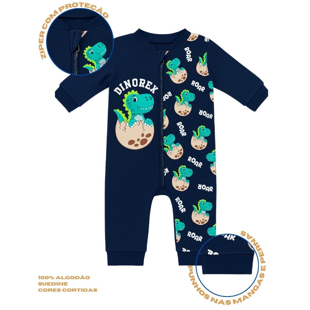 Kit 5 Macacão Roupa Bebê Longo Menino Menina Punhos Ziper Protetor Algodão Suedine Confortável P a 3