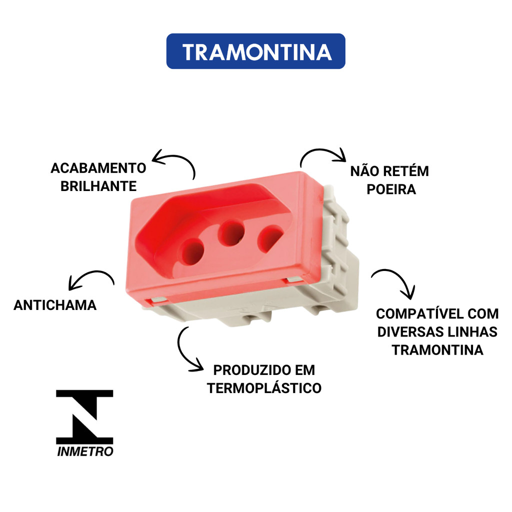 Kit 5 Módulos Tomada 2p+t 20a/250v Liz Vermelha Tramontina