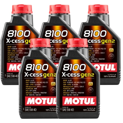 Kit 5 Óleo De Motor Motul Sintético 8100 X-cess Gen2 5W40 Para Carros, Picapes E Suvs 1L