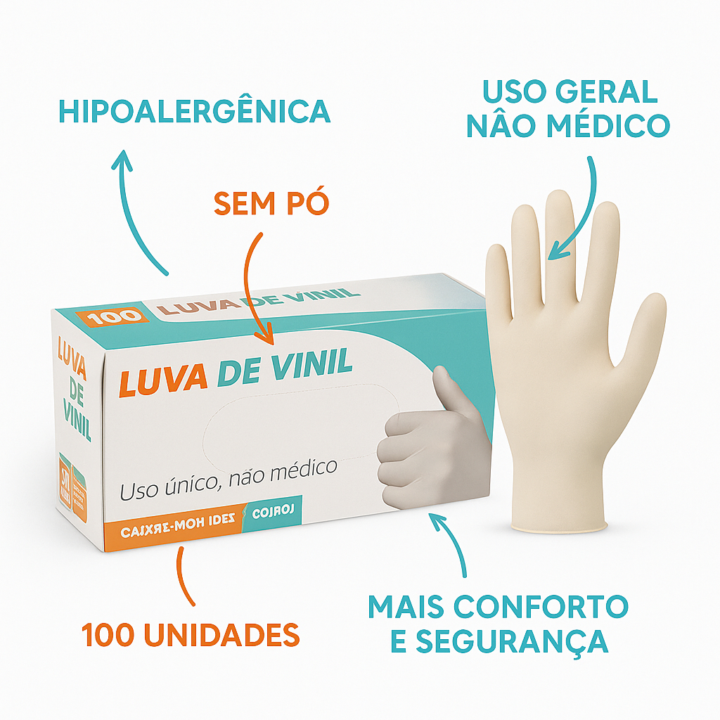 *** Produto Original - Luva Vinil Transparente *** Todos os tamanhos disponiveis Kit 10 Caixas de Luva de Vinil - Talge, Medix, Inoven e Descarpack Proteção, conforto e economia no melhor combo do mercado! Conteúdo do Kit: 10 caixas com 100 unidades cada (Total: 1.000 luvas) Modelos sortidos entre as marcas Talge, Medix, Inoven e Descarpack Tamanho: P (Pequeno) Material: Vinil (PVC), Sem Pó, Não Estéril Indicações de Uso: Clínicas, salões, estética e gastronomia Procedimentos que exigem proteção e higiene Troca frequente com excelente custo-benefício Diferenciais que você só encontra aqui: Envio Rápido Imediato (estoque no Brasil) Marcas renomadas no segmento de descartáveis Excelente ajuste e sensibilidade tátil Preço especial no kit com 10 caixas — aproveite enquanto dura! ATENÇÃO: Estoque limitado! As variações de marcas podem ser enviadas conforme disponibilidade (todas de qualidade profissional). FAÇA SEU PEDIDO AGORA E GARANTA ESSE DESCONTO!