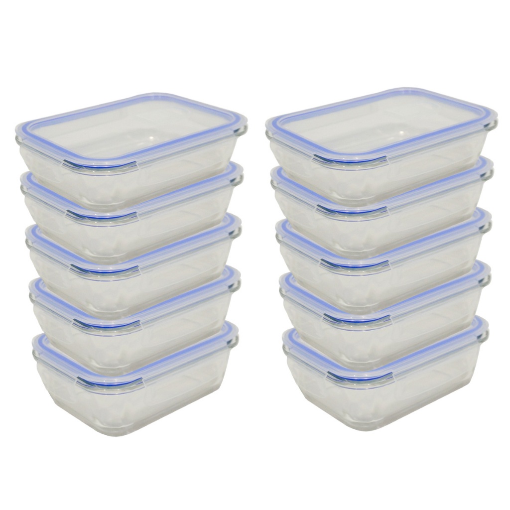 Kit 5 ou 10 Potes Herméticos de Vidro Retangular com 4 Travas - Bela Flor