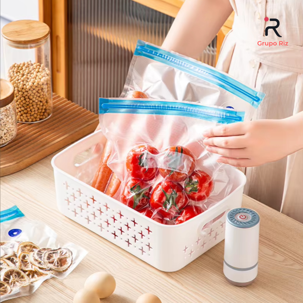 Kit 5 ou 10 Sacos Organizador a Vácuo com Bomba Manual Conservar Alimentos Frescos
