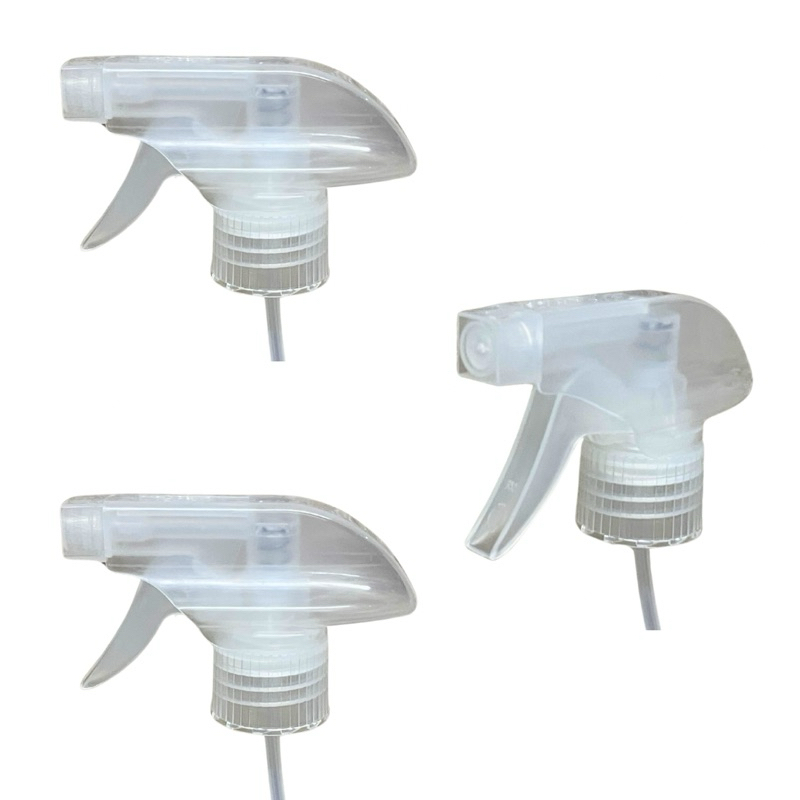 Kit com 5 válvulas gatilho spray transparente Rosca 28mm (compatível com garrafas de água e refrigerante) Comprimento 19cm