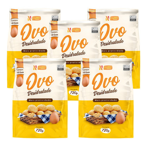 Kit 5 Pacotes Ovos Pasteurizados 300 Ovos Em Pó 720g Concentrado Nutritivo Netto Alimentos