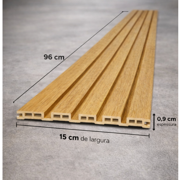 Kit 5 Painéis Ripados WPC Freijó 96x15cm 9mm - Revestimento Decorativo Parede Sala Quarto