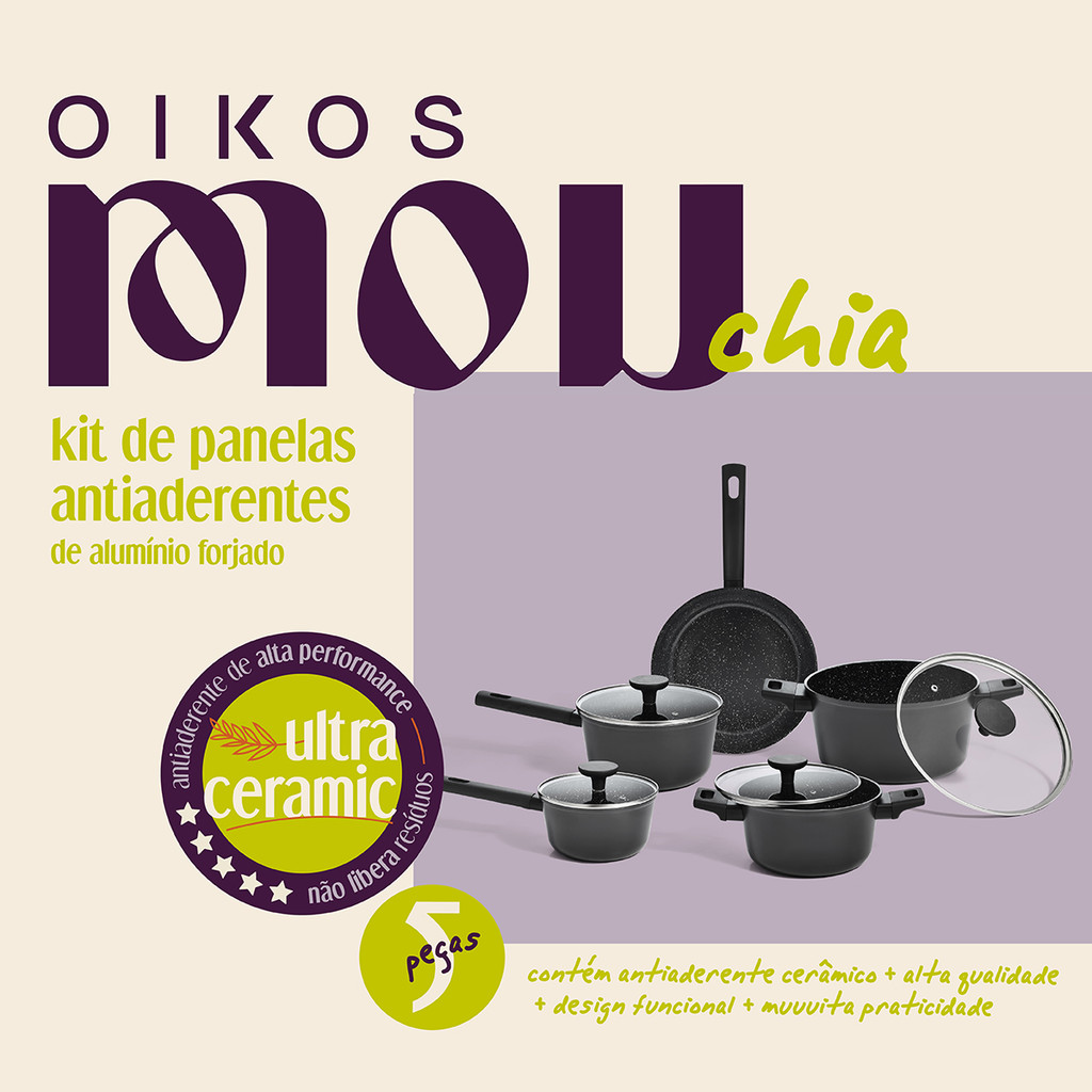 KIT 5 PANELAS DE INDUÇÃO COM ANTIADERENTE CERÂMICO MOU DE CHIA - OIKOS