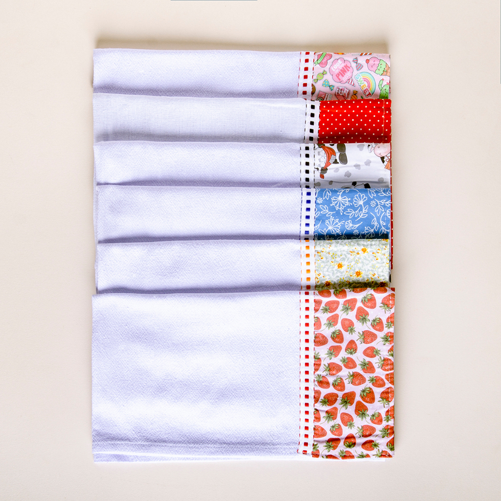 Quer uma cozinha moderna ? Comece pelos Panos de Prato! Pano de prato sacaria de alta qualidade (O Legitimo), com barrado e passa fita, com excelente absorção, não solta fiapos na louça, super absorventes e são anti mancha, podem ser lavados em água sanitária sem medo de manchar os barrados, conta com diversas estampas modernas e exclusivas, uma mais linda que a outra, criadas para alegrar e dar vida a sua cozinha. Contém 5 unidades Estampas: Sortidas Especificações: Trama 12, acabamento em bainha nas laterais com costura reforçada. Barrado: altura de 12cm 100% algodão tecido anti-mancha, estampas exclusivas. Medidas: 41 cm largura x 66 cm altura. Marca da Sacaria: Têxtil H. Carvalho (O Legitimo pé de Galinha). LAVAGEM: Podem ser lavados em água sanitária. Detalhes da Sacaria: O tecido branco do pano de prato é feito em sacaria 100% algodão (conhecido por donas de casa como pé de galinha), considerado por muitos a melhor sacaria do mercado.