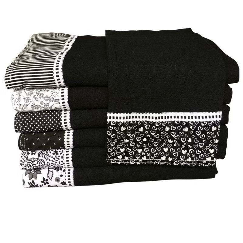 Kit 5 Panos De Prato Preto Minimalista Pé De Galhinha 100% Algodão Barrado Gourmet