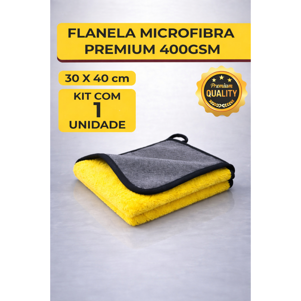 🧽 Kit 05 Flanelas de Microfibra Automotiva Premium 400GSM – 30x40cm A Flanela de Microfibra Premium 400GSM é ideal para limpeza, lavagem, secagem e acabamento automotivo. Indicada para remoção de ceras, polidores, hidratantes de couro, sprays e outros produtos automotivos, sem riscar a superfície. Possui dois lados distintos (um liso e outro extra felpudo), garantindo alta absorção e acabamento profissional. ✅ Benefícios: Ultra absorvente Não risca Extremamente durável Dois lados (amarelo e cinza) Substitui estopa e algodão 🚗 Aplicações: Lavagem e secagem do veículo Polimento e remoção de ceras Limpeza interna e externa 🧼 Limpeza e manutenção: Lavar à mão ou na máquina Não usar amaciante ou alvejante 📐 Especificações: Tamanho: 30 x 40 cm Gramatura: 400GSM Cores: Amarelo / Cinza 📦 Conteúdo da embalagem: 05 Flanelas de Microfibra Premium 30x40cm