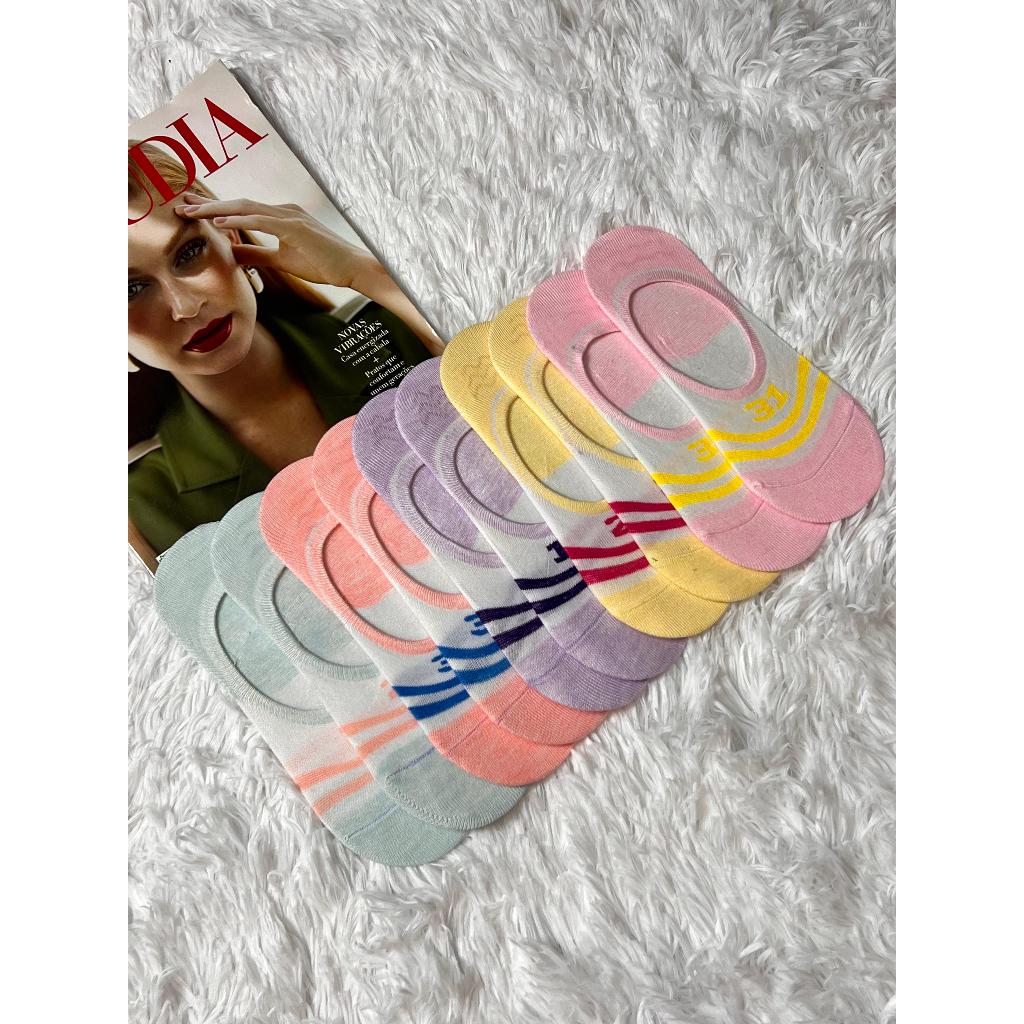 Kit 5 Pares Meia Sapatilha invisível 80% Algodão Com Silicone Adulto Feminina
