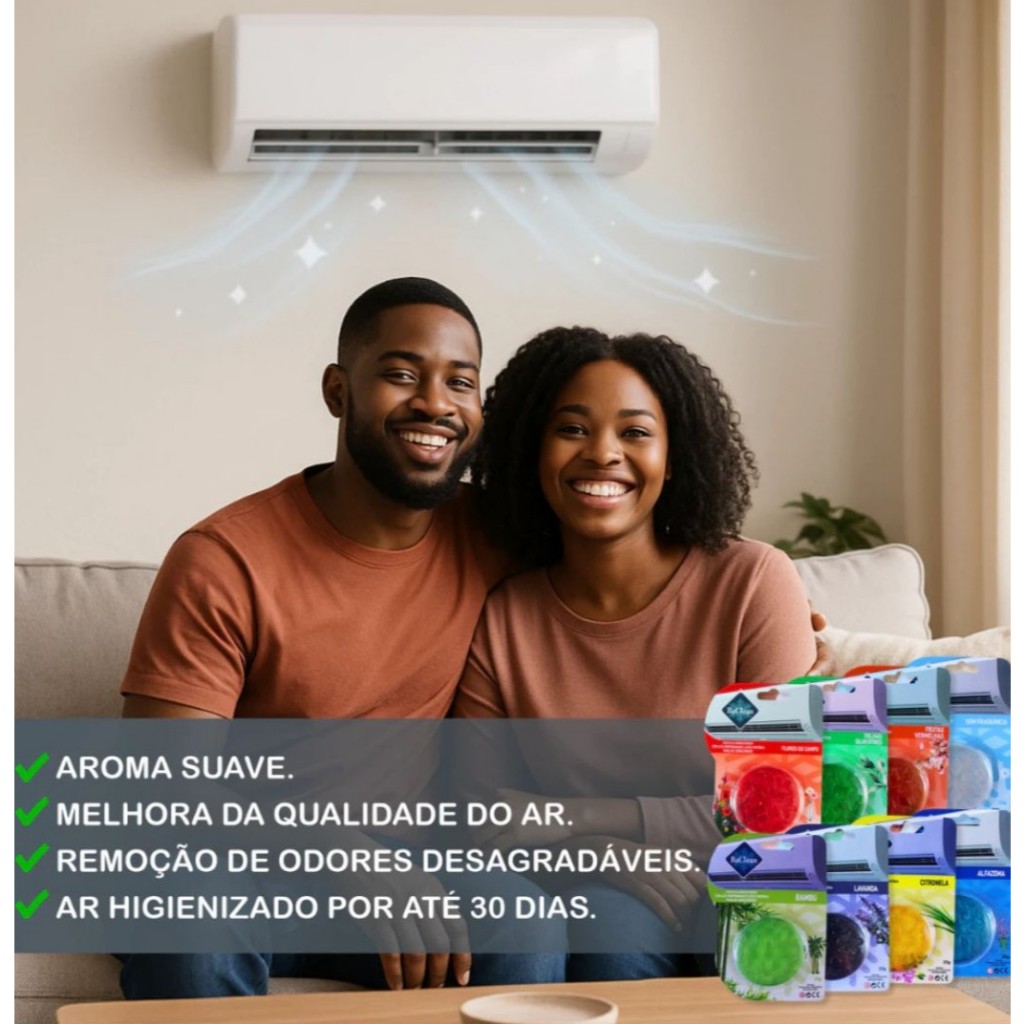 Kit com 5 Pastilhas Aroma Ameixa Dourada Condicionado – BaClean Produto original direto da fábrica Nota Fiscal em todas as vendas Envio imediato! Produto em estoque Perfume agradável e neutralização de odores em seu ambiente! Transforme a experiência de estar em um ambiente climatizado com as Pastilhas Aromatizantes BaClean, desenvolvidas com tecnologia avançada para eliminar maus odores e deixar o ar com um aroma suave e duradouro. Essenciais para quem possui ar-condicionado em casa, escritórios, lojas ou consultórios. Ideal também para ativar memórias olfativas e criar sensações agradáveis no ambiente! Destaques do Produto: Ação neutralizadora de odores, não apenas disfarça – elimina as partículas causadoras. Aromas sofisticados, leves e agradáveis, ideais para ambientes fechados. Sensação de limpeza, frescor e bem-estar no ar. Fácil instalação – em poucos passos, sem ferramentas. Duração média de 30 a 60 dias, com uso diário de até 6h. Kit com 5 pastilhas do mesmo aroma (não é possível sortido). Aroma: Ameixa Dourada O aroma Ameixa Dourada combina a doçura suculenta da ameixa madura com notas leves e sofisticadas que remetem a frutas frescas e toque dourado de calor. É uma fragrância marcante, envolvente e ao mesmo tempo equilibrada, perfeita para quem gosta de um cheiro doce na medida certa. Seu perfume entrega sensação de aconchego, sofisticação e frescor frutado, tornando qualquer ambiente mais agradável e acolhedor. Ideal para quem busca uma fragrância doce, elegante e moderna. Modo de uso: Levante a tampa frontal do ar-condicionado. Retire a tela do filtro. Fixe a pastilha na parte superior da serpentina. Recoloque a tela. Feche a tampa. Pronto! Sem garantia