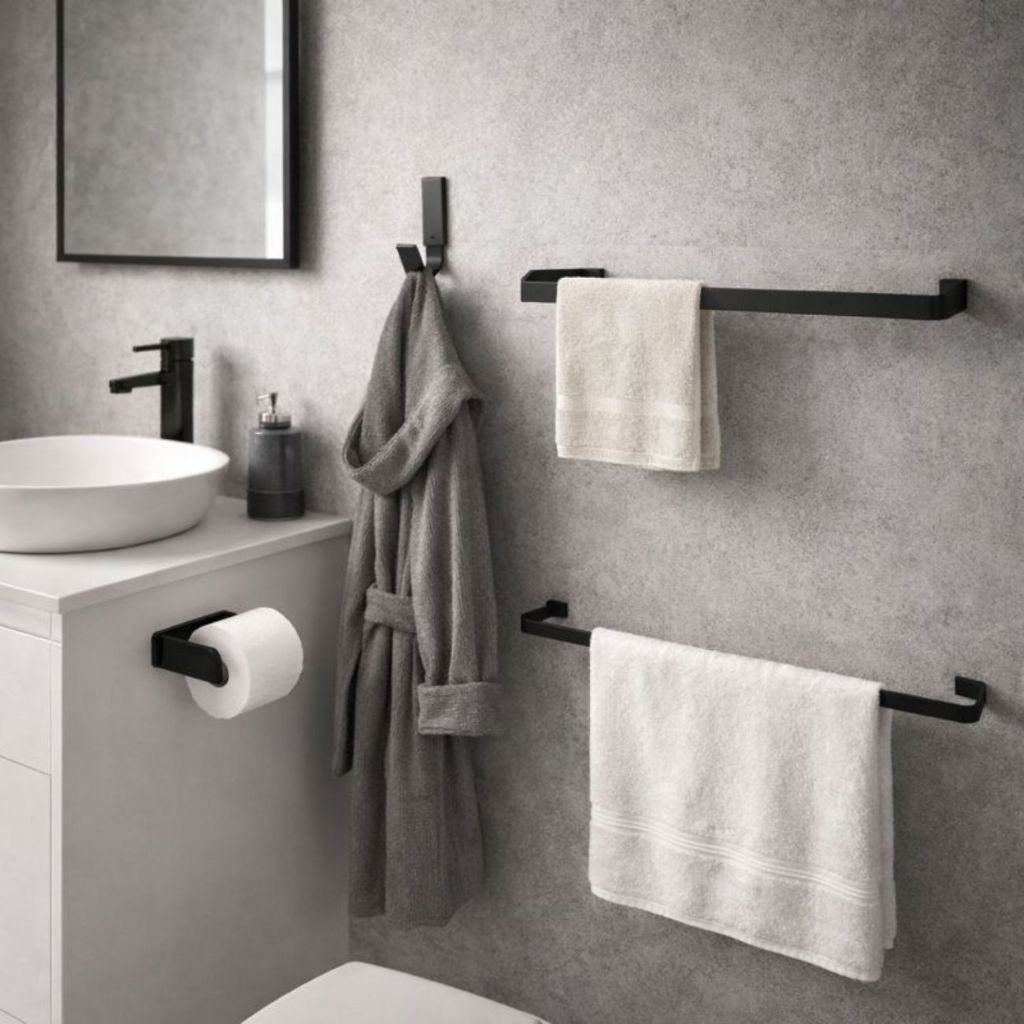 🛁 Kit Acessórios para Banheiro 5 Peças – Organização e Elegância Deixe seu banheiro muito mais organizado, moderno e funcional com este Kit de Acessórios para Banheiro 5 Peças. Ideal para quem busca praticidade no dia a dia sem abrir mão da estética, o conjunto é perfeito para banheiros residenciais, lavabos e áreas de serviço. O kit conta com toalheiro de banho, toalheiro de rosto, porta papel higiênico e cabide, oferecendo tudo o que você precisa para manter toalhas e papel higiênico sempre ao alcance das mãos, com instalação simples e visual elegante que combina com diversos estilos de decoração. Fabricado com material resistente e durável, é ideal para ambientes úmidos, garantindo maior vida útil e facilidade na limpeza. Um produto funcional que valoriza seu banheiro e traz mais conforto para sua rotina. ✅ Conteúdo da Embalagem: ✔ 1 Toalheiro de banho ✔ 1 Saboneteira ✔ 1 Toalheiro de rosto ✔ 1 Porta papel higiênico ✔ 1 Cabide (gancho) ✨ Características: • Design moderno e funcional • Ideal para banheiros e lavabos • Material resistente e durável • Fácil instalação • Organização prática do ambiente • Produto compacto, não ocupa muito espaço • Fácil limpeza 📐 Especificações: • Quantidade: 5 peças • Aplicação: Parede • Uso: Banheiro / Lavabo • Indicado para: Toalha de banho, toalha de rosto e papel higiênico • Instalação: Parafusada (ou cola, se quiser que eu adapte) 🏡 Indicado para: ✔ Banheiros residenciais ✔ Lavabos ✔ Apartamentos ✔ Casas ✔ Kit para reforma ou reposição ✔ Presente útil para casa nova