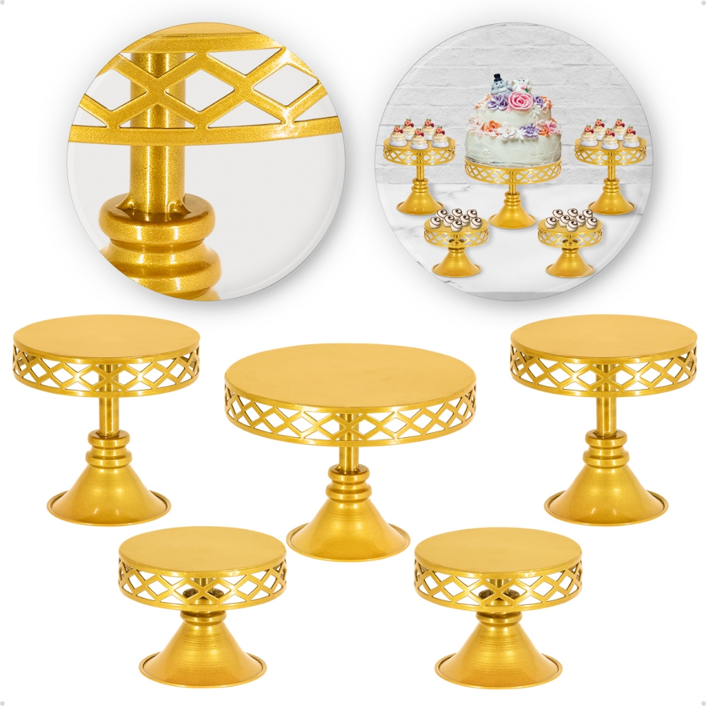 Kit 5 Peças Boleira E Bandejas Em Ferro Dourada