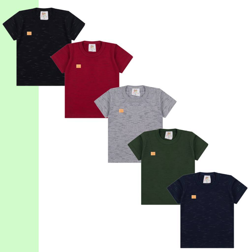 Kit 5 Peças Camisetas Manga Curta Lisas com Aplique em Meia Malha Infantil e Juvenil