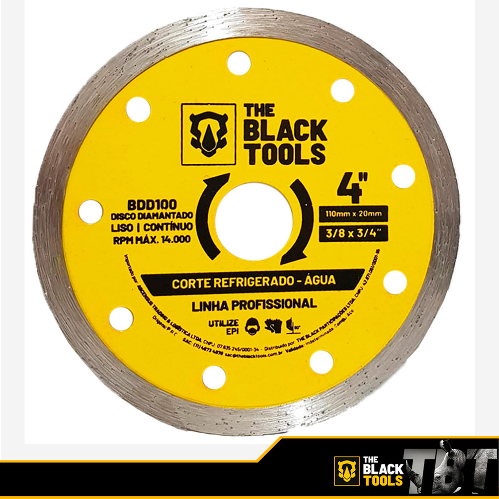 A The Black Tools é uma marca comprometida com a qualidade e as necessidades do cliente. Nosso objetivo é oferecer as melhores soluções para o seu dia a dia, com um design funcional e inovador. DISCO DIAMANTADO LISO/CONTÍNUO 4" (110MM) - BDD100 O Disco diamantado liso/contínuo 4" (110mm) The Black Tools permite um corte mais preciso e de melhor acabamento, é disco é utilizado no corte de materiais mais nobres, com uma velocidade de corte menor Especificações Técnicas: Dimensões do Produto: 4” (110mm) Furo: 20mm Marca: The Black Tools Modelo: BDD100 Garantia: 03 Meses + DISCO DIAMANTADO TURBO 4" - BDD300 VANTAGENS: O Disco diamantado turbo 4" ( 110mm ) - The Black Tools é ideal para realizar cortes em materiais como mármores, granitos, pedras decorativas e alvenaria, além de garantir uma ótima velocidade de corte. FICHA TÉCNICA: Dimensões do Produto: 4” (110mm) Furo: 20mm Composição: Aço Marca: The Black Tools Modelo:BDD300 Garantia: 03 Meses + DISCO DE SERRA PARA MADEIRA 4.3/8" BDS240 - THE BLACK TOLLS Disco de Serra 4.3/8" BDS24 para Madeira The Black Tools, é a escolha perfeita para profissionais e entusiastas do DIY. Disco de serra é a ferramenta que você precisa para transformar seus projetos em realidade. VANTAGENS: - Cortes Precisos: Com 24 dentes de corte afiados, este disco de serra proporciona cortes precisos e suaves em uma variedade de madeiras, desde tábuas até compensados e MDF. - Durabilidade Superior: Fabricado com aço de alta qualidade, este disco é resistente ao desgaste, prolongando sua vida útil e reduzindo a necessidade de substituição frequente. - Versatilidade: Compatível com várias marcas de serras circulares e meia-esquadria, este disco é uma escolha versátil para uma ampla gama de projetos de marcenaria. - Fácil Instalação: O furo interno de 20mm permite uma instalação rápida e fácil em sua ferramenta, economizando tempo e esforço. FICHA TÉCNICA: - Dentes de Serra: 24 dentes de corte afiados - Material do Disco: Aço de Alta Qualidade. - Diâmetro do Disco: 4.3/8" (110mm). - Rotação Máxima: 10.000 RPM. - Aplicação: Corte de Madeira. - Furo Interno: 20mm. Marca: The Black Tools Modelo: BDS240 Garantia: 03 Meses. SKU: KIT23105_23508x2_23507x2