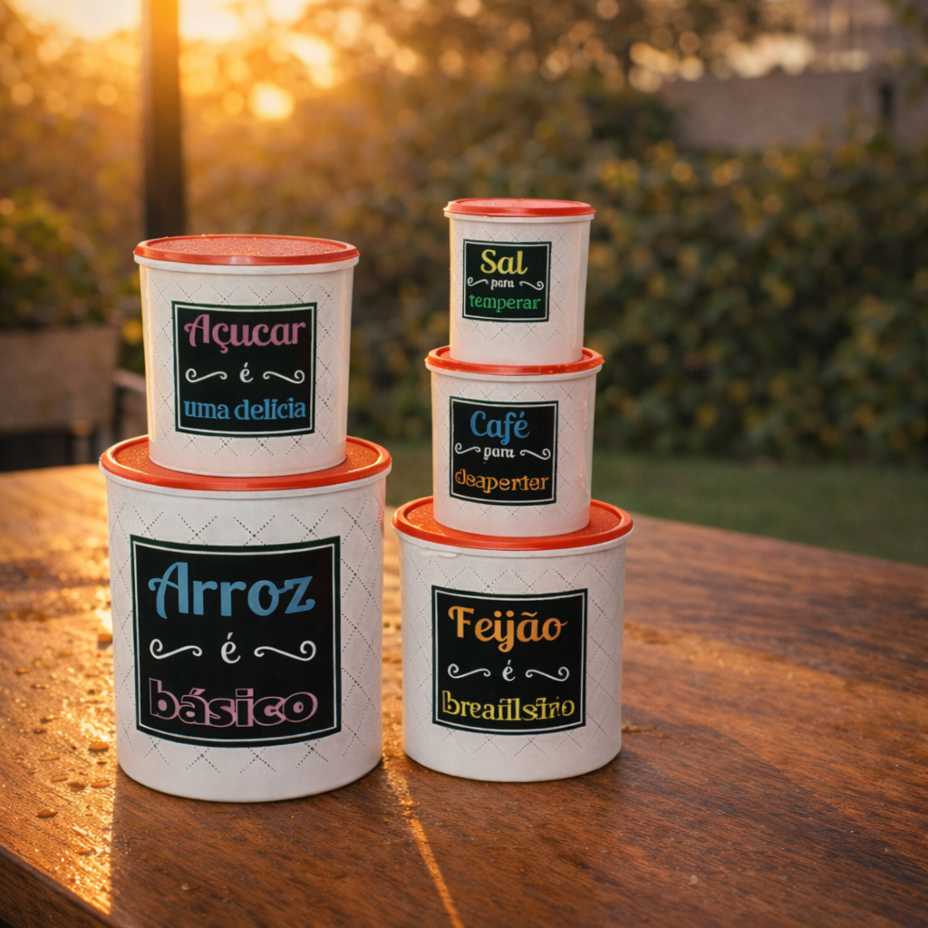 Kit 5 Peças Mantimento Jogo Plástico/ Porta Mantimentos e Organizadores de cozinha com Adesivo