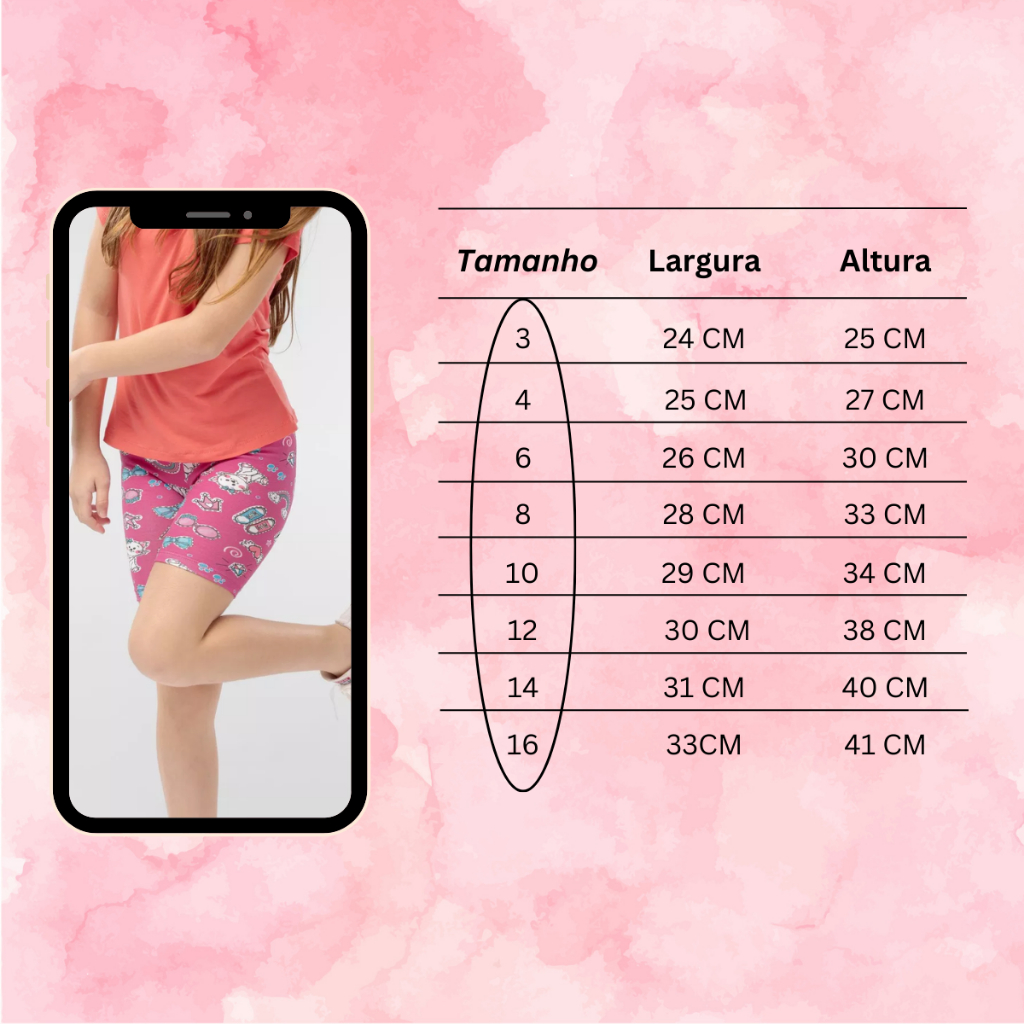 Apresente à sua pequena o conforto e a praticidade dos nossos Shorts Infantis de Cotton! Este kit com 05 peças sortidas é perfeito para compor looks estilosos e confortáveis para o dia a dia. Com materiais de alta qualidade, os shorts garantem liberdade de movimento e um toque macio na pele. O QUE VOCÊ IRÁ RECEBER? - 05 Shorts em cores e estampas variadas BENEFÍCIOS - CONFORTO ABSOLUTO para o dia a dia - MATERIAL DE ALTA QUALIDADE que não desbota - FÓRMULA ANTIALÉRGICA, perfeita para a pele delicada - VARIEDADE DE ESTAMPAS que encantam as crianças CARACTERÍSTICAS - MALHA COTTON que proporciona leveza - 96% ALGODÃO, 4% ELASTANO - COSTURA REFORÇADA para maior durabilidade - ENVIO RÁPIDO em até 24h úteis após a confirmação - PEÇAS REVISADAS DUAS VEZES antes do despacho TABELA DE TAMANHOS: 03: LARGURA: 24CM ALTURA: 25CM 04: LARGURA: 25CM ALTURA: 27CM 06: LARGURA: 26CM ALTURA: 30CM 08: LARGURA: 28CM ALTURA: 33CM 10: LARGURA: 29CM ALTURA: 34CM 12: LARGURA: 30CM ALTURA: 38CM 14: LARGURA: 31CM ALTURA: 40CM 16: LARGURA: 33CM ALTURA: 41CM Perguntas frequentes 1. As peças são todas do mesmo tamanho? R: Sim, todas as peças são do mesmo tamanho, garantindo uniformidade. 2. Como funciona o envio? R: O envio é realizado em até 24h úteis após a confirmação do pedido. 3. As estampas são escolhidas aleatoriamente? R: Sim, as estampas são sortidas e variadas, garantindo surpresa e diversão! 4. As peças são laváveis à máquina? R: Sim, recomendamos lavagem à máquina em ciclo delicado para preservar as cores e a qualidade. Qualquer dúvida, estamos aqui para ajudar! Aproveite a oportunidade de adquirir um kit incrível e cheio de estilo para a sua menina! shorts infantil feminino cotton legging confortável shorts legging infantil reforçado bermuda suplex short cotton infantil shorts menina short infantil menina kit bermudas shorts infantil juvenil suplex menina shorts infantil cotton bermuda
