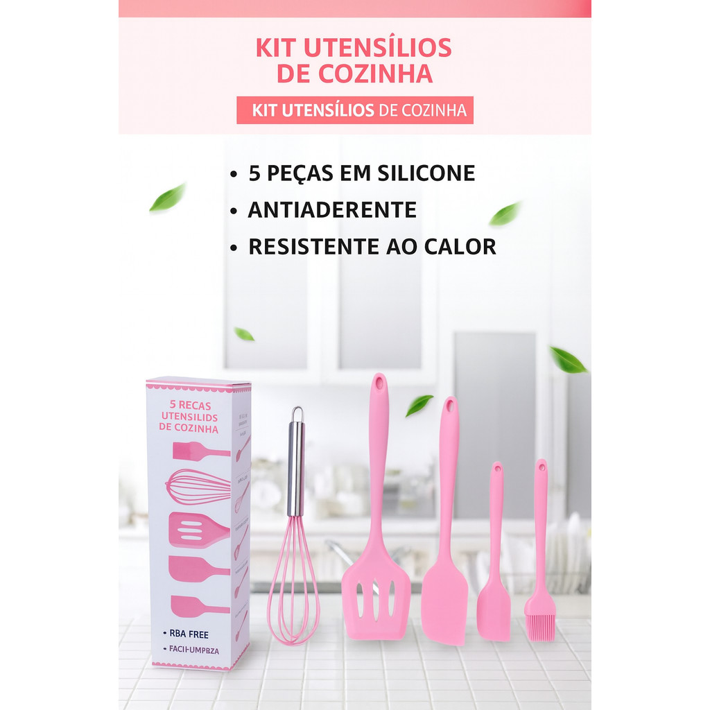 Kit Utensílios de Cozinha Silicone 5 Peças Antiaderente Resistente ao Calor 📝 Descrição otimizada: Transforme sua rotina na cozinha com o Kit de Utensílios em Silicone com 5 Peças projetado para oferecer praticidade, durabilidade e segurança no preparo das suas receitas favoritas! ✅ Ideal para panelas antiaderentes e cerâmicas — evita arranhões e prolonga a vida útil das suas panelas. ✅ Material premium e atóxico (livre de PBA) — seguro para toda a família. ✅ Resistente ao calor (até 200 °C) — perfeito para uso diário. ✅ Fácil de limpar e compatível com lava-louças. ✅ Design moderno com furação para pendurar — organização e praticidade na sua cozinha. 📦 Conteúdo do Kit (5 Peças): 1 x Pincel de Silicone – 20,8 cm 1 x Espátula de Vazamento – 30,4 cm 1 x Espátula Pão Duro Grande – 27,7 cm 1 x Espátula Pão Duro Pequena – 21,5 cm 1 x Fue / Fouet – 25,6 cm 🧾 Especificações: Material: Silicone / Borracha Alimentar Uso em micro-ondas: ❌ Não Uso em lava-louças: ✅ Sim Resistência ao calor: até 200 °C