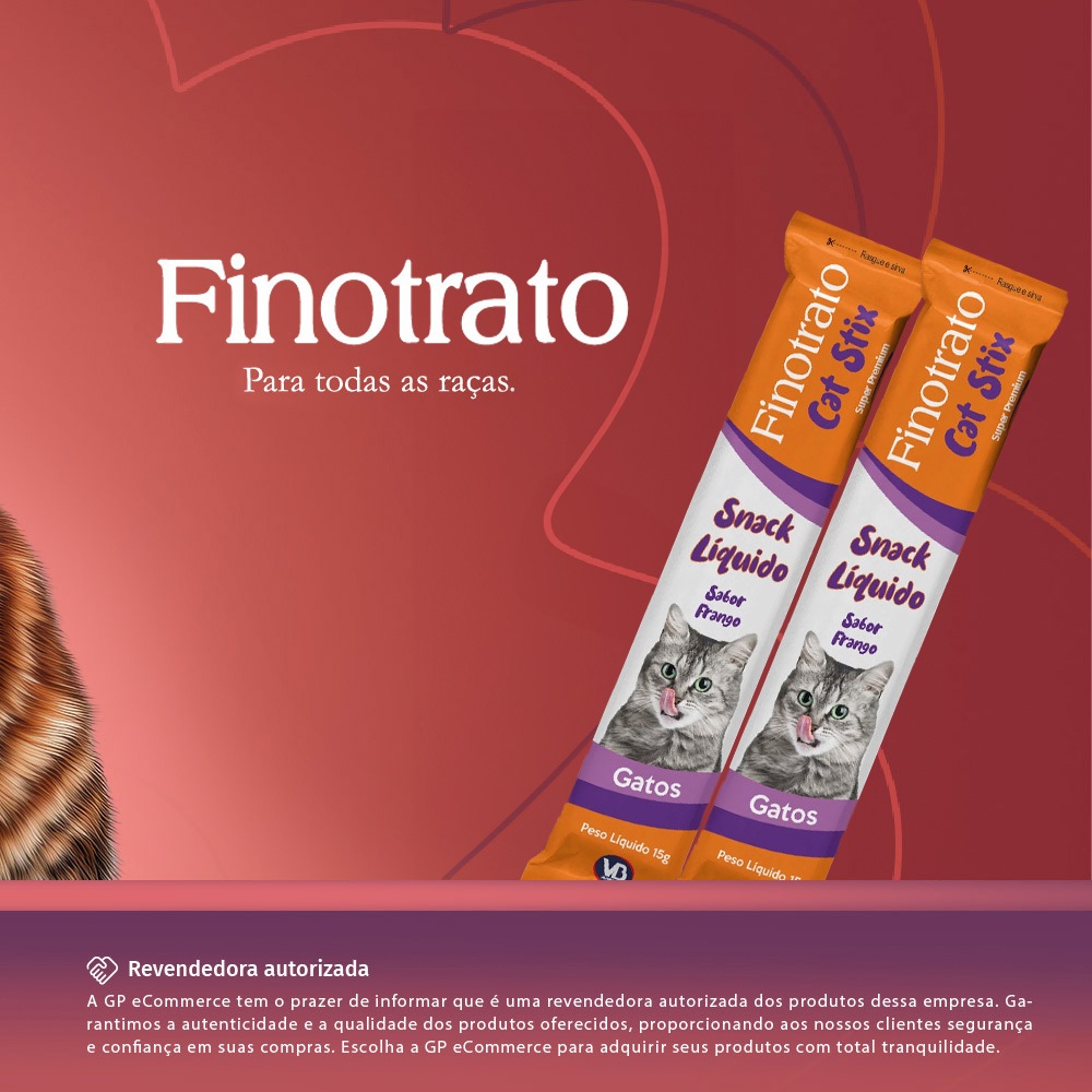 PRODUTO ORIGINAL COM NOTA FISCAL! - - - - - APRESENTAÇÃO: KIT COM 5 x FINOTRATO CAT STIX FRANGO 15G - - - - - DESCRIÇÃO: O Petisco Finotrato Cat Stix para Gatos Sabor Frango é uma opção deliciosa, saudável e nutritiva para o cardápio dos felinos. Com 40% de proteína fresca, proporciona o suporte essencial para a vitalidade e energia do seu pet. Sua receita é rica em minerais e vitaminas, livre de conservantes e corantes artificiais, garantindo uma alimentação mais natural e segura. Além disso, auxilia no manejo do seu gatinho, sendo ideal para recompensá-lo durante treinamentos ou como um mimo diário. - - - - - INSTRUÇÕES: Servir o alimento seguindo as quantidades recomendadas na tabela “Guia de Alimentação Diária”. As necessidades nutricionais do seu pet podem variar com a idade. - - - - - Enviamos o seu pedido o quanto antes possível! Obrigado pela preferência.