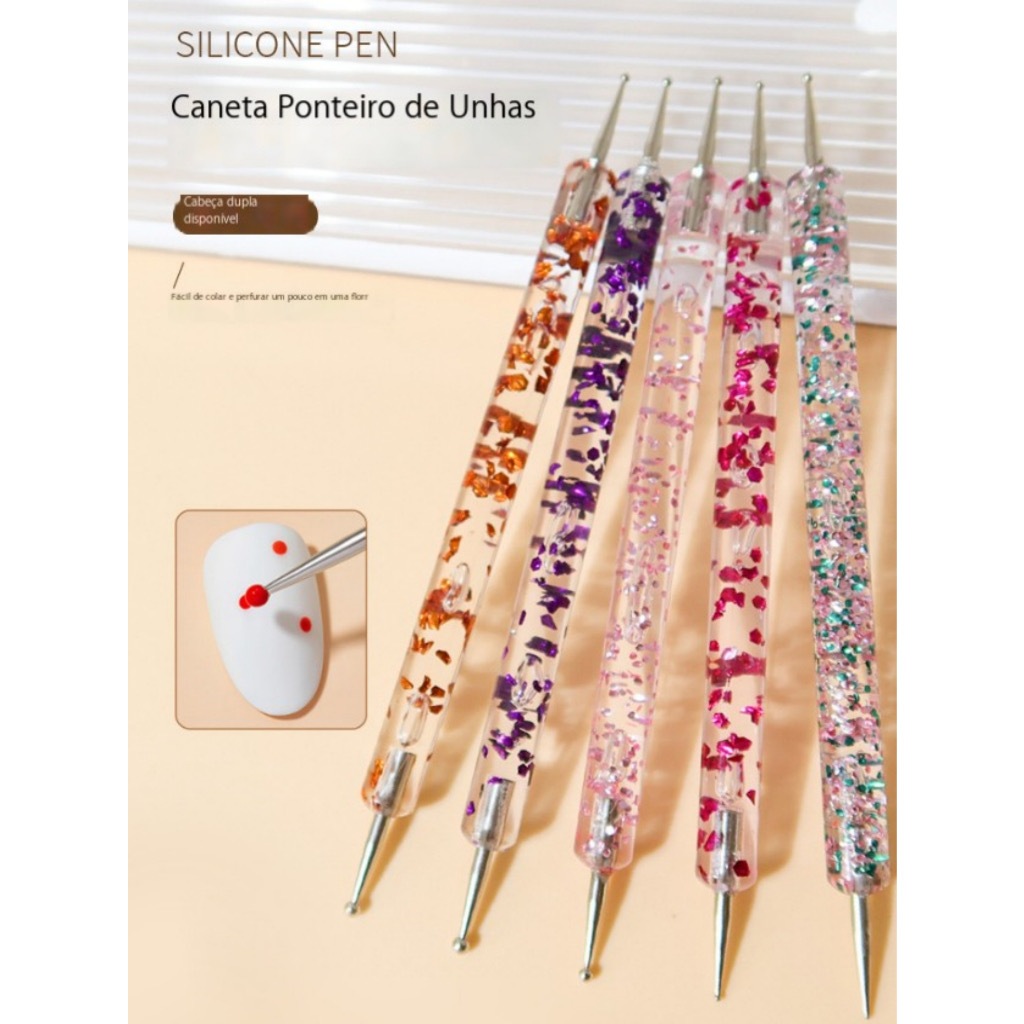 Kit 5 Pincéis boleadores de ponta dupla decoração de Unha