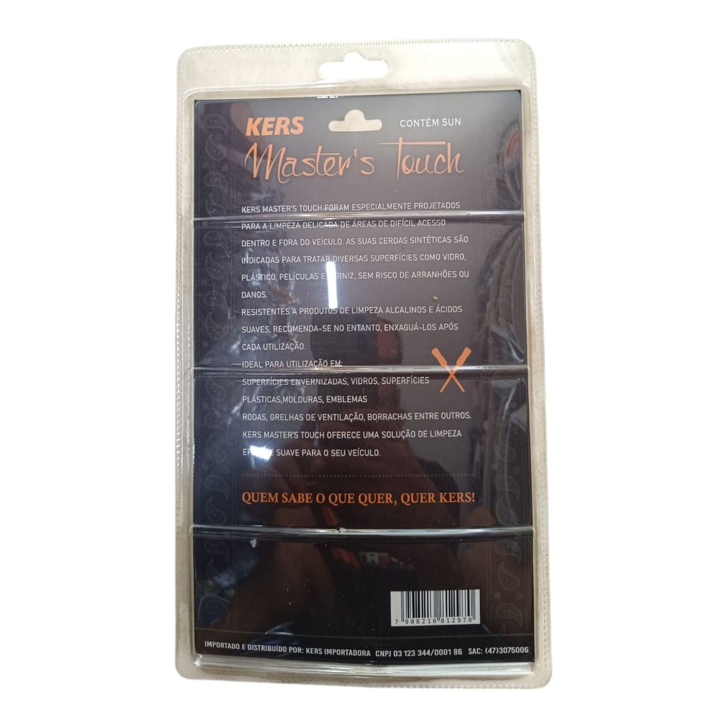 KERS MASTER S TOUCH FORAM ESPECIALMENTE PROJETADOS PARA ALIMPEZA DELICADADE ÁEAS DE DIFÍCIL ACESSO DENTRO E FORA DO VEÍCULO. AS DUAS CERDAS SINTÉTICAS SÃO INDICADAS PARA TRATAR DIVERSAS SUPERFÍCIES COMO VIDRO, PLÁSTICO, PELÍCULAS E VERNIZ, SEM RISCO DE ARRANHÕES OU DANOS. RESISTENTES A PRODUTOS DE LIMPEZA ALCALINOS E ÁCIDOS SUAVES, RECOMENDA-SE NO ENTANTO, ENXAGUÁ-LOS APÓS CADA ULTILIZAÇÃO. IDEAL PARA ULTILIZAÇÃO EM SUPERFÍCIES ENVERNIZADAS, VIDROS, SUPERFÍCIES PLÁSTICAS, MOLDURAS EMBLEMAS RODAS, GRELHAS DE VENTILAÇÃO, BORRACHAS ENTRE OUTROS. KERS MASTERS TOUCH OFERECE UMA SOLUÇÃO DE LIMPEZA EFICAZ E SUAVE PATA O SEU VEÍCULO. QUEM SABE O QUE QUER, QUER KERS