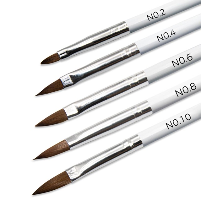 Kit 5 Pincéis Profissionais Decoração Unhas Gel Acrílico Porcelana Aquarela Manicure Pedicure Branco