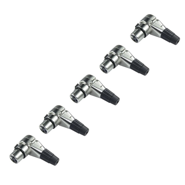 Kit 5 Plug Conector Canon XLR 90 Fêmea Graus em L Banhado a Ouro HJH HX1065