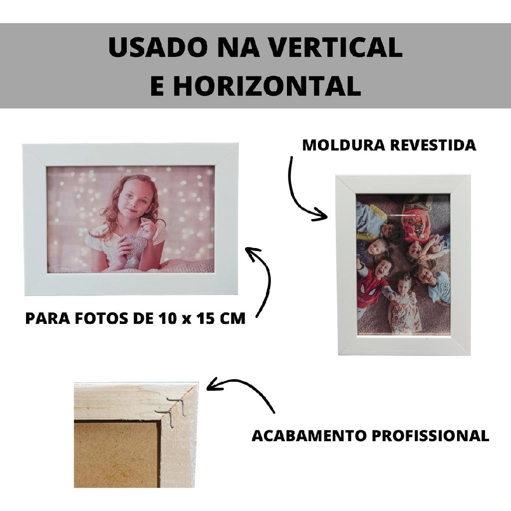 Kit com 05 molduras com ótima qualidade para que possa emoldurar seus momentos especiais e importantes. - Produtos de altíssima qualidade. - Pode ser usado na Vertical ou Horizontal - Molduras de madeira de reflorestamento . - Vidro comum - Embalagem adequada e segura para que seu produto chegue em perfeito estado - Atendimento personalizado - Envio em menos de 24 horas Especificações Técnicas: Porta Retrato Individual Espaço interno Foto 10x15 cm Tamanho Externo 13x18 cm Acompanha Vidro Comum Suporte / Gancho de parede (5 unidades) Qualquer dúvida, entre em contato conosco através do campo de perguntas que estamos sempre a disposição. PRONTA ENTREGA - ENVIO PARA TODO O BRASIL - ACABAMENTO PREMIUM