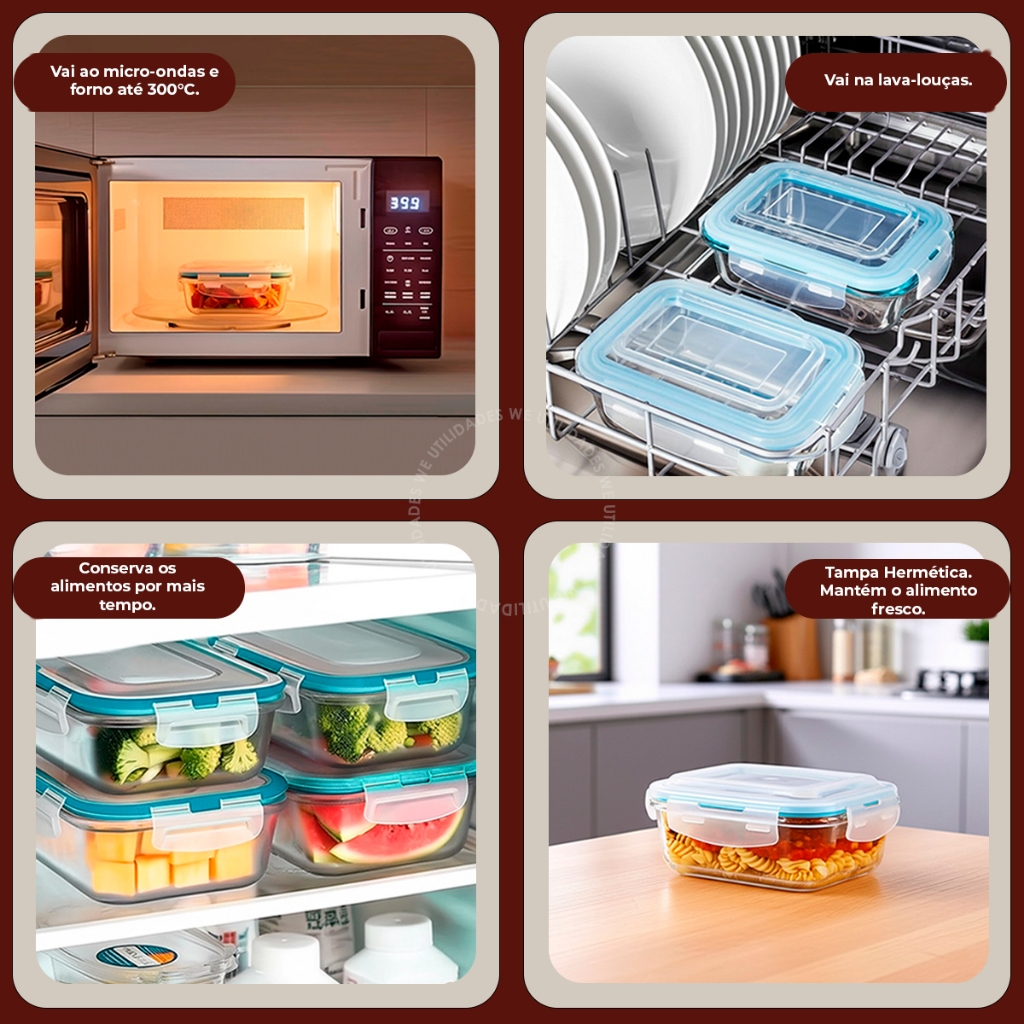 Kit 5 Potes de Vidro Hermético Mantimentos Marmita 1050ml