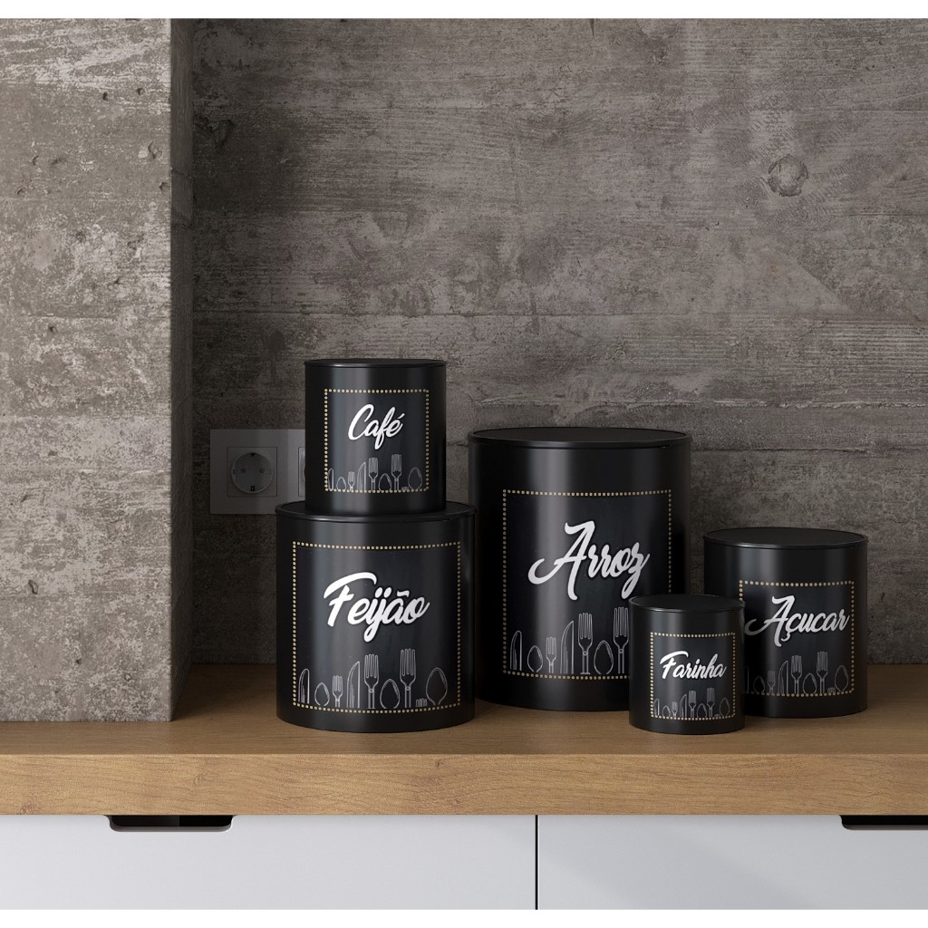 Kit 5 Potes Para Mantimentos Decorados Talher Decoração Casa Cozinha Plástico Resistente