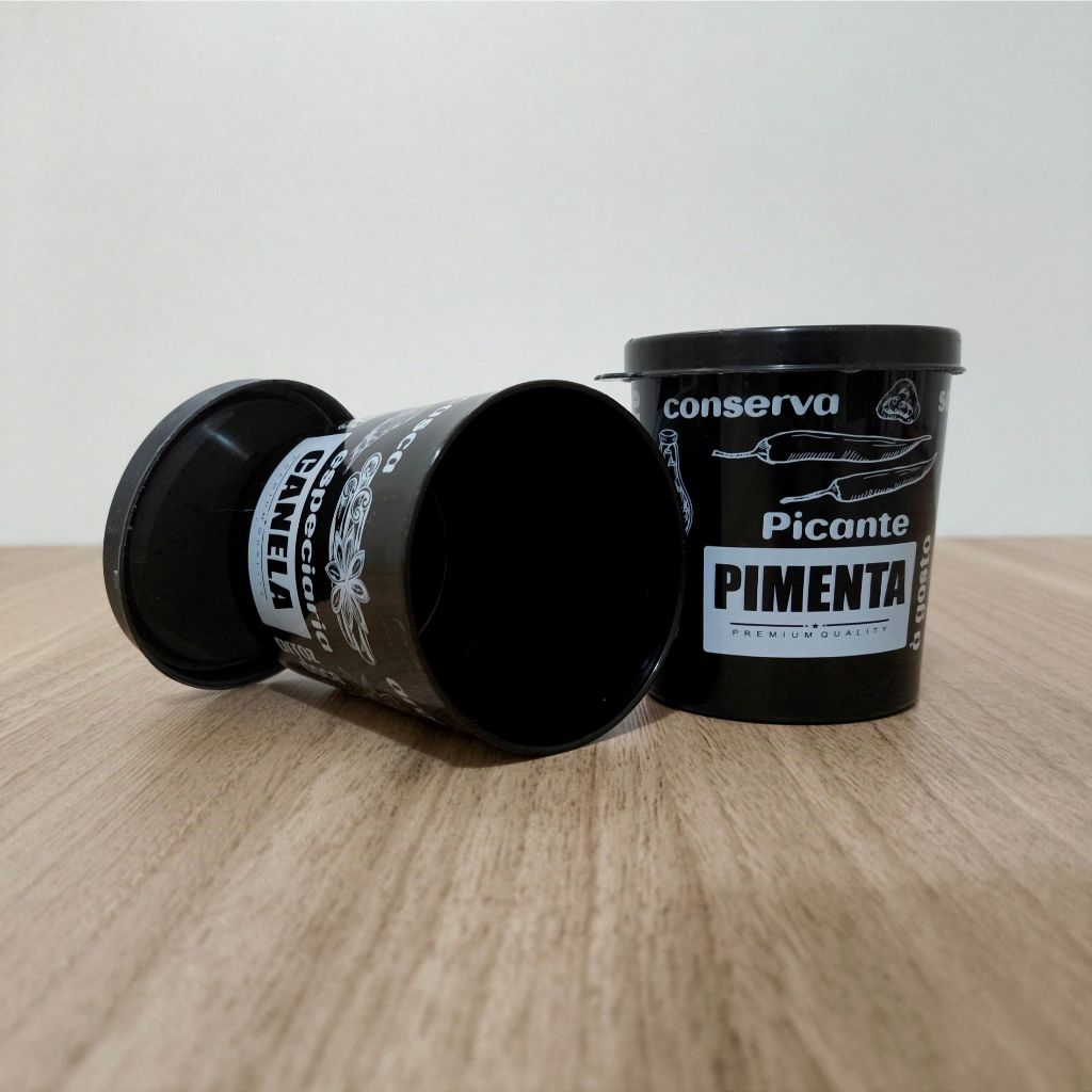 Olá somos à Casa e Cozinha Pedreira! Além dos potes coloridos apresentamos os 5 potes plásticos totalmente pretos. São perfeitos para armazenar páprica, orégano, canela, pimenta e colorau, facilitando o acesso durante o preparo das refeições. A cor preta oferece um visual sofisticado, que combina com qualquer estilo de cozinha. Todos os possuem tampas herméticas que mantêm a frescura e o sabor dos temperos, protegendo-os da umidade e da luz. LIVRES DE BPA (atóxico) CAPACIDADE: 200 ml Medidas aproximadas: (A x D) = 7,5 x 6,5 cm Variações de CONDIMENTOS: * COLORAU * CANELA * PIMENTA * PÁPRICA * ORÉGANO