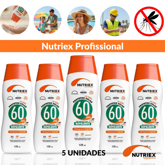 Kit 5 Protetores Nutriex FPS60 Repelente 120ml Proteção Solar Alta + Repelência