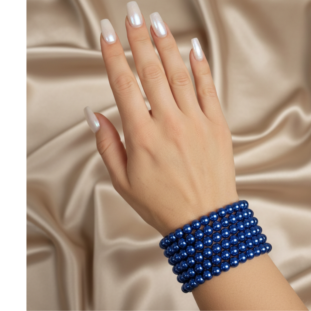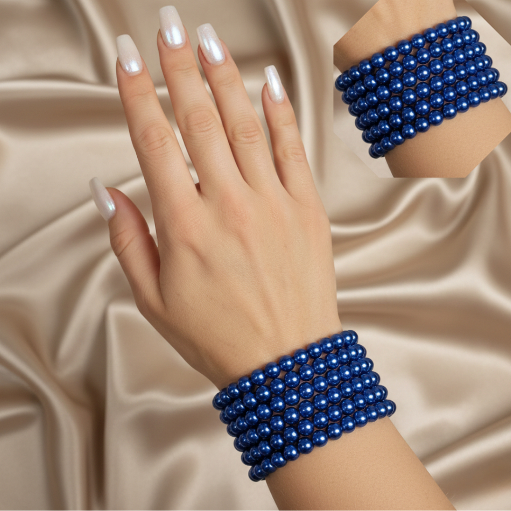 Kit 5 Pulseiras Azul Marinho Perolada 6mm Elástico Proteção Brilho