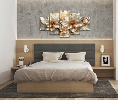 Kit 5 Quadros Decorativos Mosaico Lírio Bronze Flor Sala Ys
