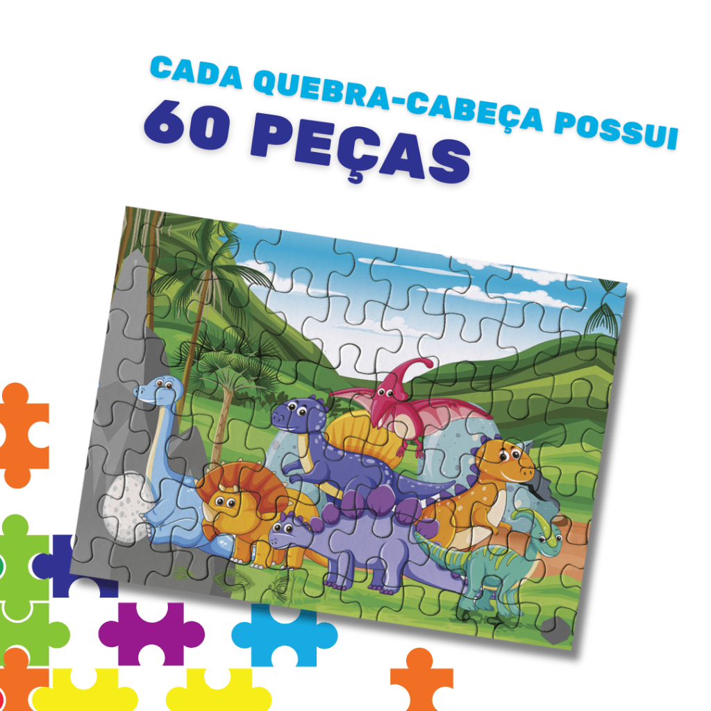 Kit 5 Quebra-Cabeças de Dinossauros para Crianças – 60 Peças – Colorido, Divertido e Educativo