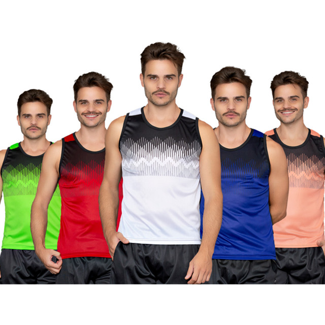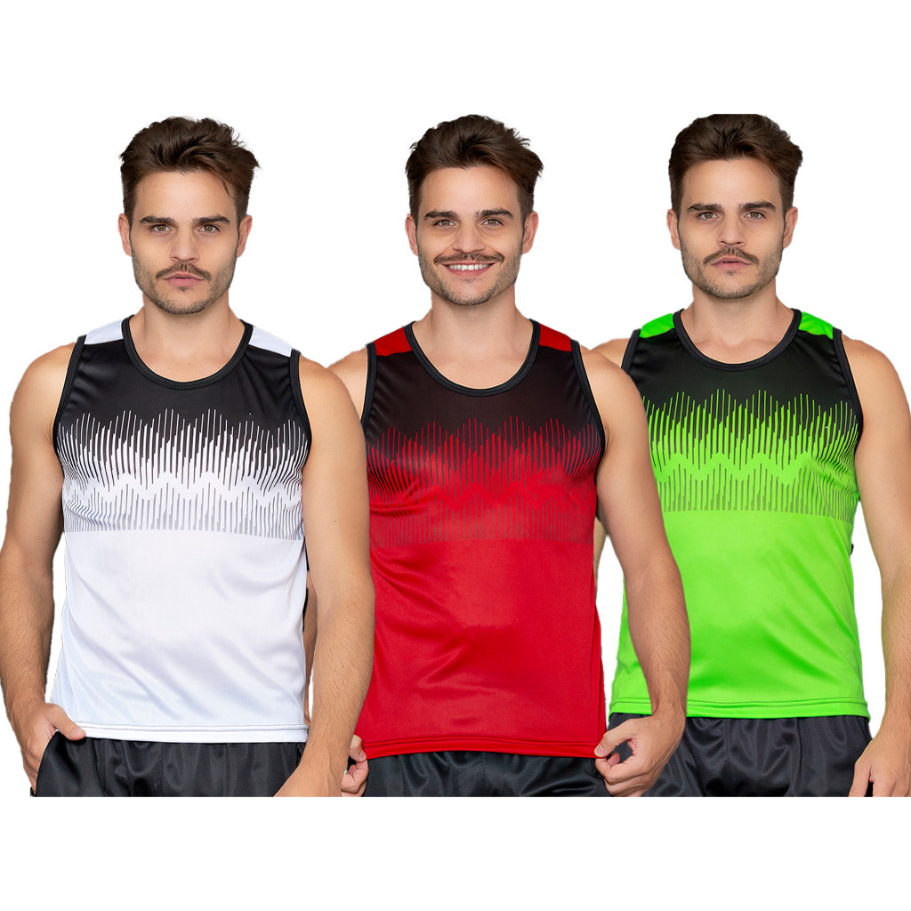 Kit 5 Regatas Dry-fit Olá! Nossas Regatas Dryfit são feitas com total exclusividade para você praticamente de qualquer atividade física. Pois ela conta com a tecnologia dos tecidos absorventes de umidade, permitindo a rápida evaporação do suor, onde também conta com um toque mais macio do tecido, e tendo um tratamento eficaz contra fungos e bactérias. Se você busca conforto e leveza para suas atividades físicas, recomendamos demais nossa camisa Dryfit. TECIDO: 100 % Poliéster COSTURA: Costura Premium, duplamente reforçada Medidas m: L= 55cm – c = 70cm – CONTORNO = 97cm g: L = 56cm – c = 71cm – CONTORNO = 100cm gg: L = 57cm - c = 72cm – CONTORNO = 103cm