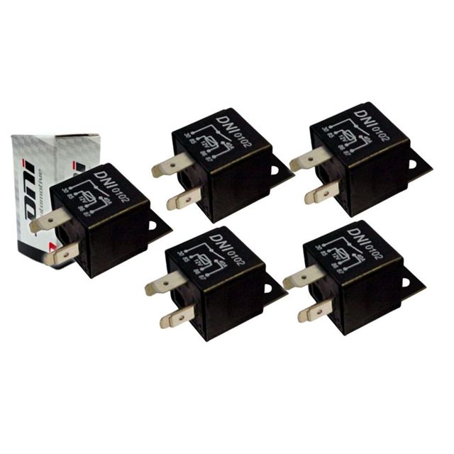 Kit 5 Relé Auxiliar 12v 40a C/ Suporte 4 Pinos DNI0102 Relé Ventoinha Vidro Elétrico Ar Condicionado