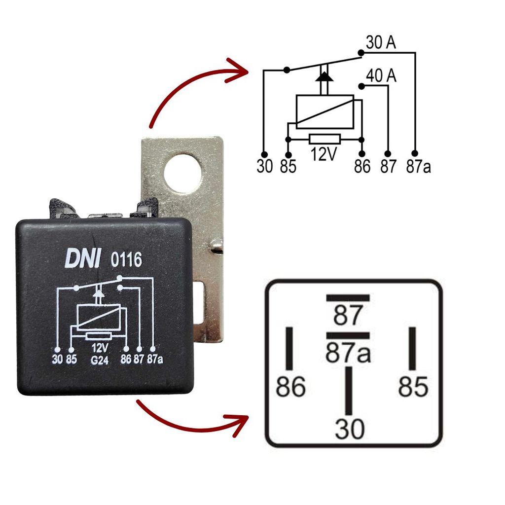 Kit 5 Relé Auxiliar Reversor 40/30a 5 Terminais 12v Universal Com Suporte DNI0116