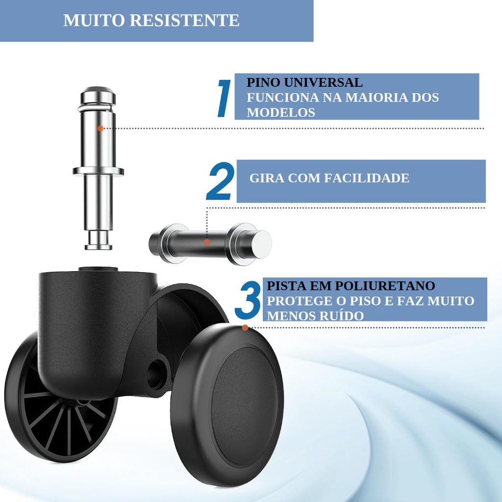 Kit 5 Rodinhas Anti-Risco e Anti-Ruído para Cadeira em PU Preto