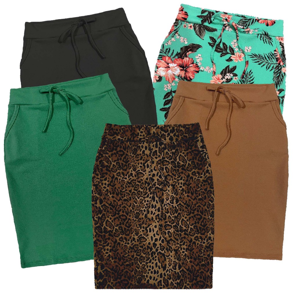 kit 5 Saias Lápis Estampada Floral Linda Moda Evangélica Elegante