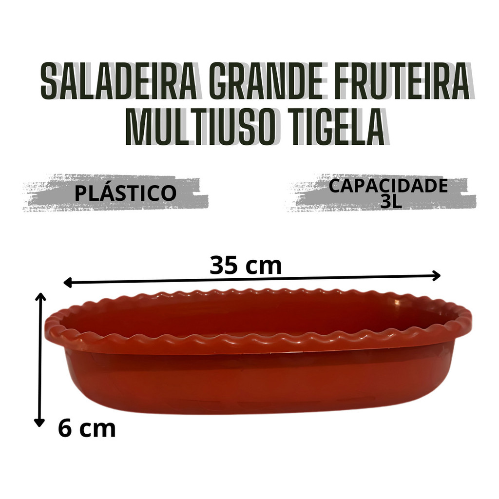Saladeira Grande Fruteira Multiuso Tigela Pote Plástica 3 litros de capacidade Resistente Produto super útil e prático , seu formato facilita muito na hora do armazenamento , trazendo praticidade e elegância para cozinha . Fora as cores que são as mais vivas e lindas do mercado Produto super resistente podendo ser levado em Freezer , Micro-ondas e até mesmo lava louças . Nossa Saladeira possue excelentes resistência térmica Capacidade para 3 litros Comprimento - 35 cm Largura- 21 cm Altura- 6 cm