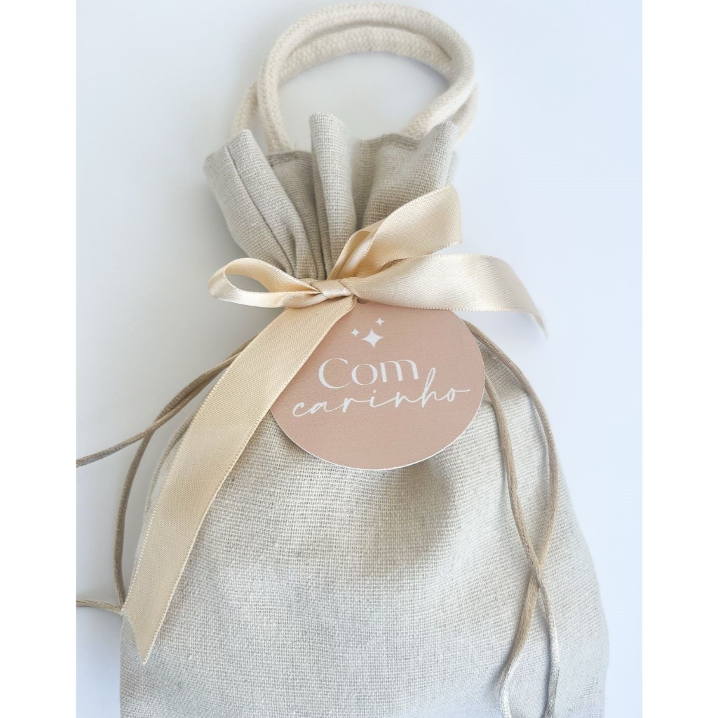 O que você está comprando; 05 saquinhos puxar com alça natural liso; 05 tags possivel personalização com logo ou escrita; 05 fitas de cetim; - Confeccionada com costura profissional em tecido Linho de alta qualidade; - As cores mudam em diferentes monitores ou celulares; Nos esforçamos ao máximo para tirar fotos profissionais, mais realistas, mesmo assim pode haver alguma diferença. Assim, a cor que você vê na tela pode não ser exatamente a mesma que você vai receber.