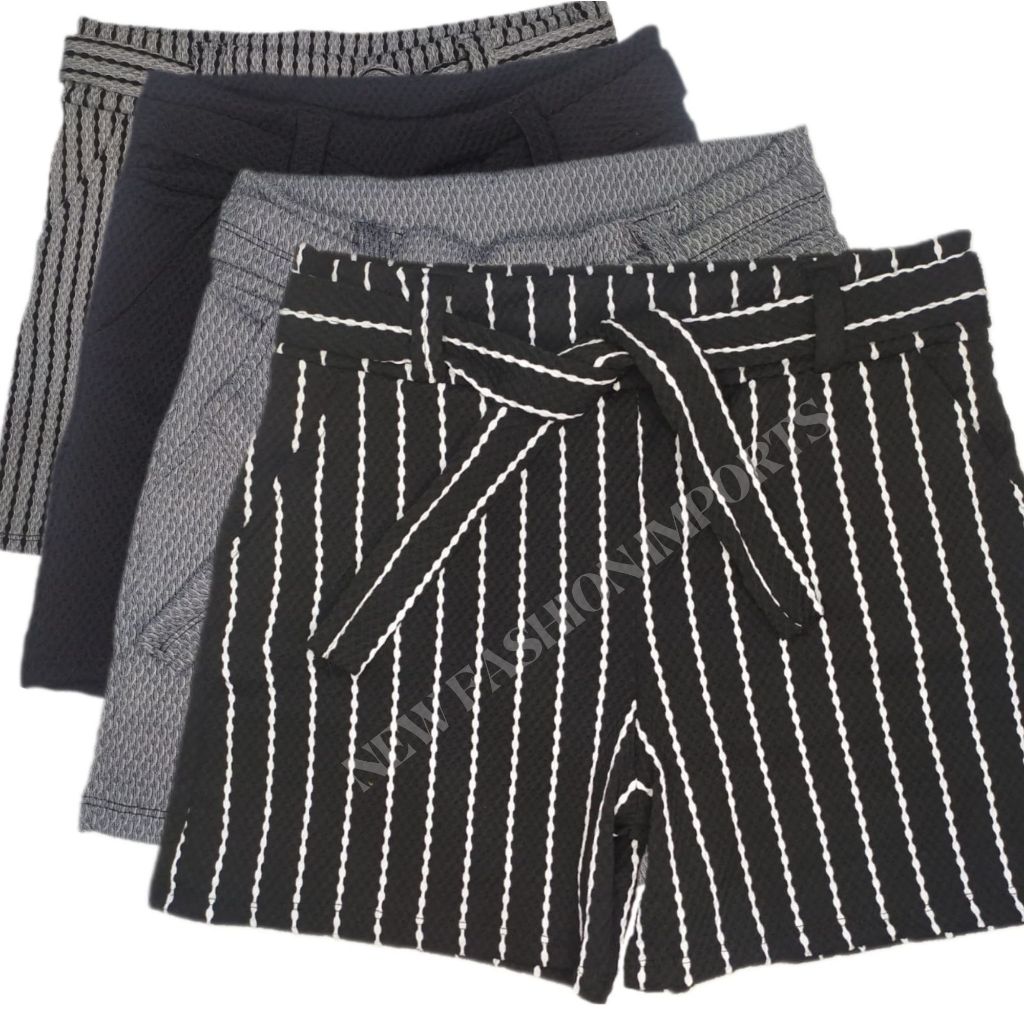 Kit 5 Shorts Crepe Feminino Bermuda Colméia c/cinto liso e listrado