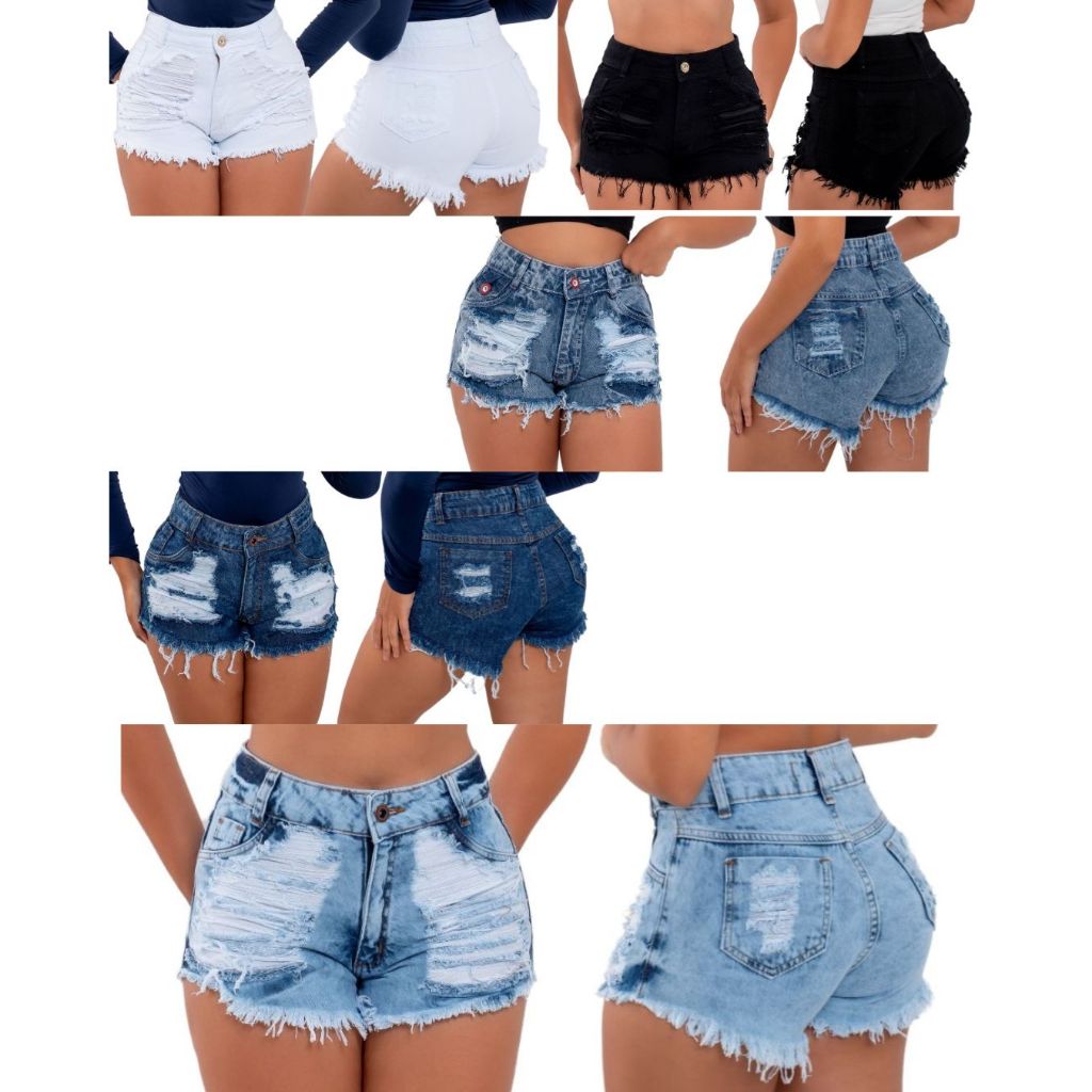 Kit 5 Shorts Jeans Feminino Cintura Alta