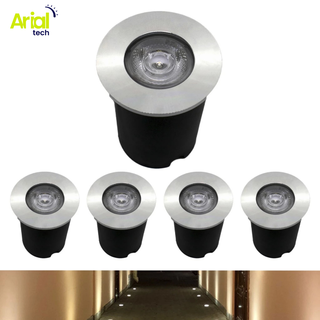 Kit 5 Spot Balizador Led Embutir Chão Piso Jardim 1w Quente Bivolt