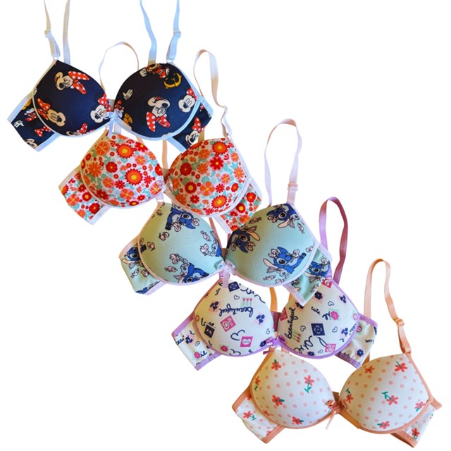 Kit 5 Sutiã 8 a 14 Anos Menina Moça com Bojo Estampado Liso Confortável Infantil Juvenil